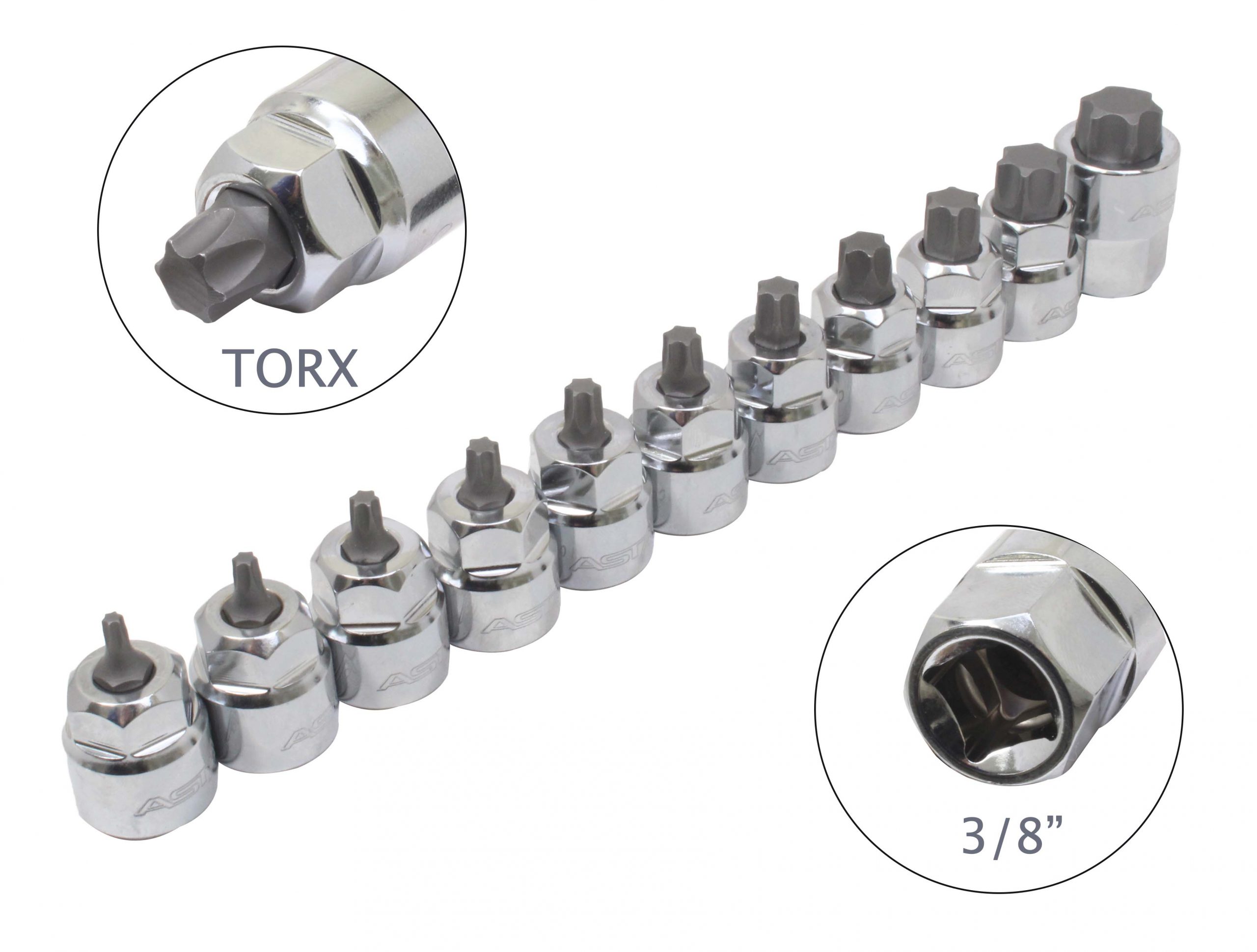 Set of 11 pcs. TORX sockets by ASTA with increased durability and a very low profile, which makes them stand out from other standard sockets.