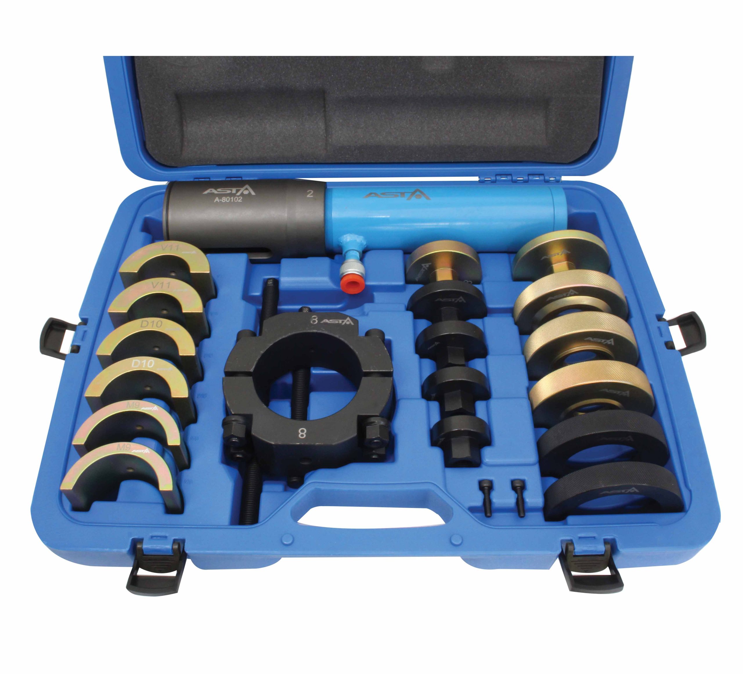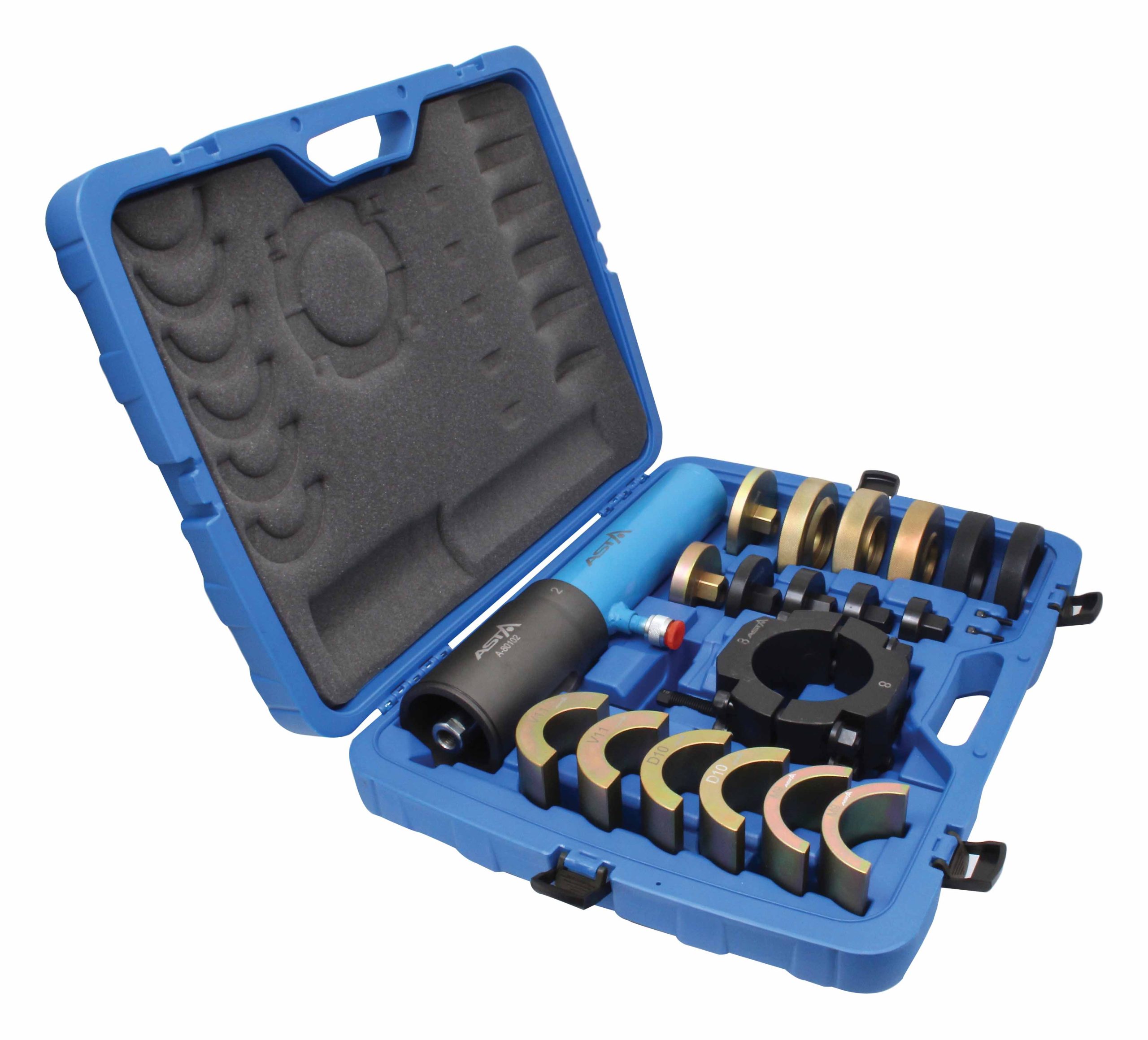 Professional kit for mounting and removing metal – rubber sleeves suspended on trucks.