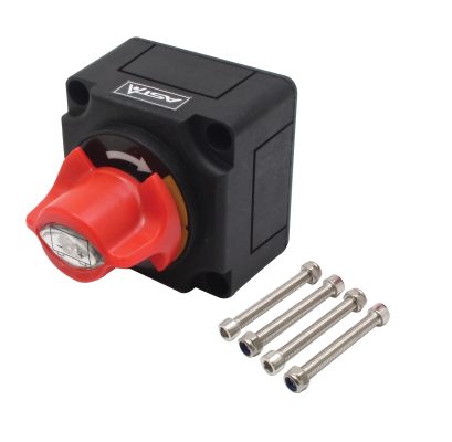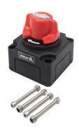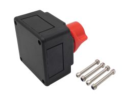 The battery disconnect switch with a continuous current rating of 275 A is ideal for 48–60V systems and reliably interrupts the power supply to the vehicle or onboard battery to ensure safety and prevent energy loss during extended periods of inactivity. It also supports 350 A intermittently and up to 1250 A for starting current. Operation is simple and secure via an ergonomic rotary knob with ON and OFF positions. The splash-proof design allows cable connections from all four sides, with unused entries safely sealed. The switch is suitable for surface mounting and, to a limited extent, for flush mounting. It can be used individually or in combination to minimize battery drain and effectively prevent leakage current—perfect for RVs, boats, ATVs, trucks, and stationary power systems.
