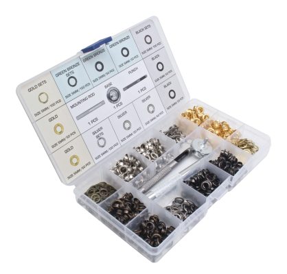 Start by punching holes in the marked areas using the hole punch tool. Then insert the metal eyelet set through the hole and combine it with the grommet. Finally, use a hammer or other installation tool to hammer and secure. Work on a solid, flat surface when tapping to avoid damaging the edges.