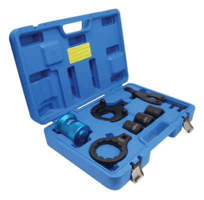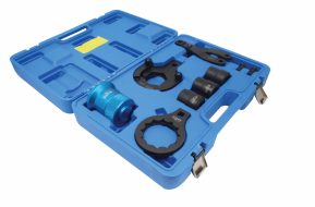 The set includes dedicated service tools that allow precise, safe, and controlled loosening, holding, and installation of seals, without the risk of damaging the shaft, flanges, or the differential housing.