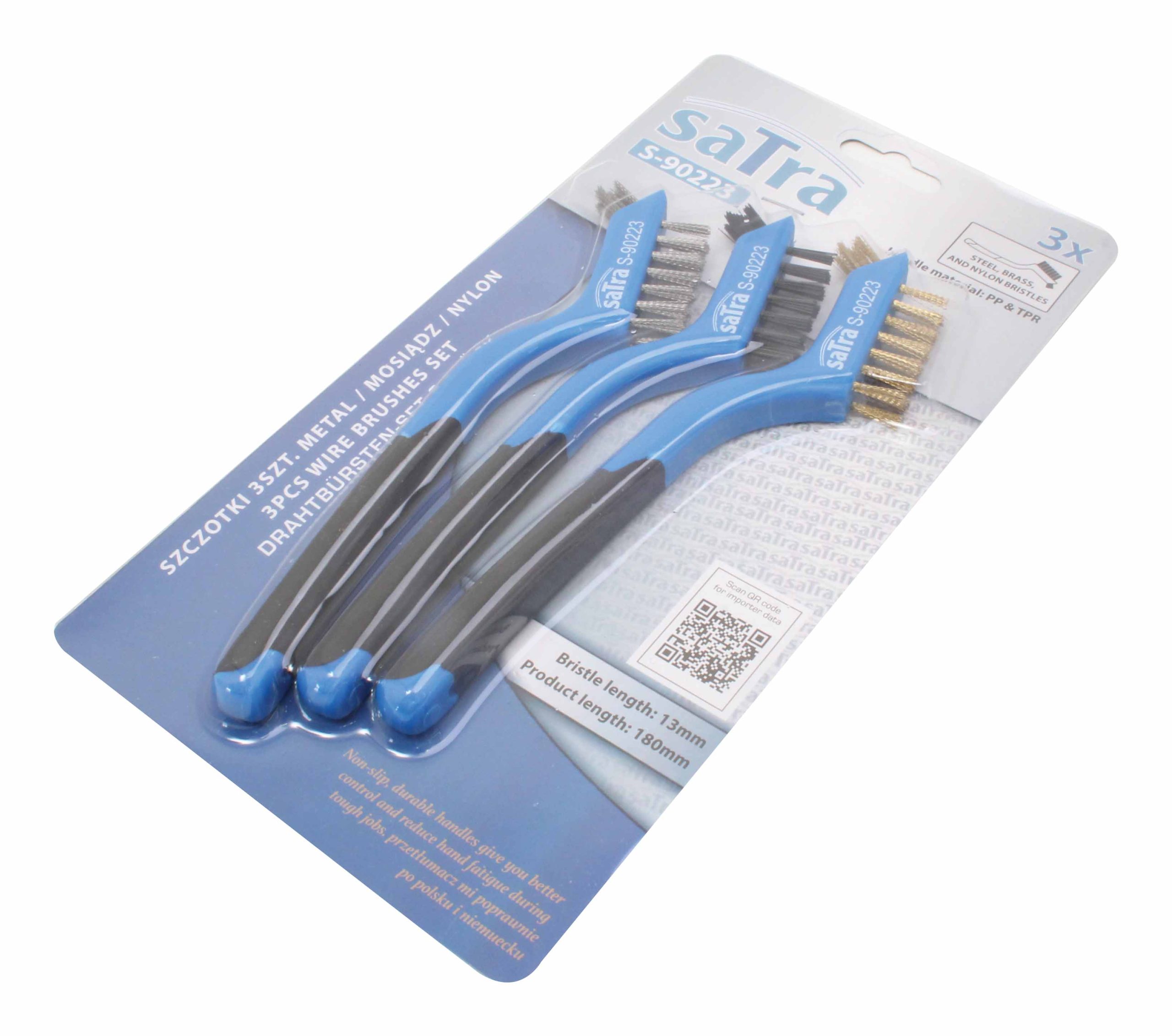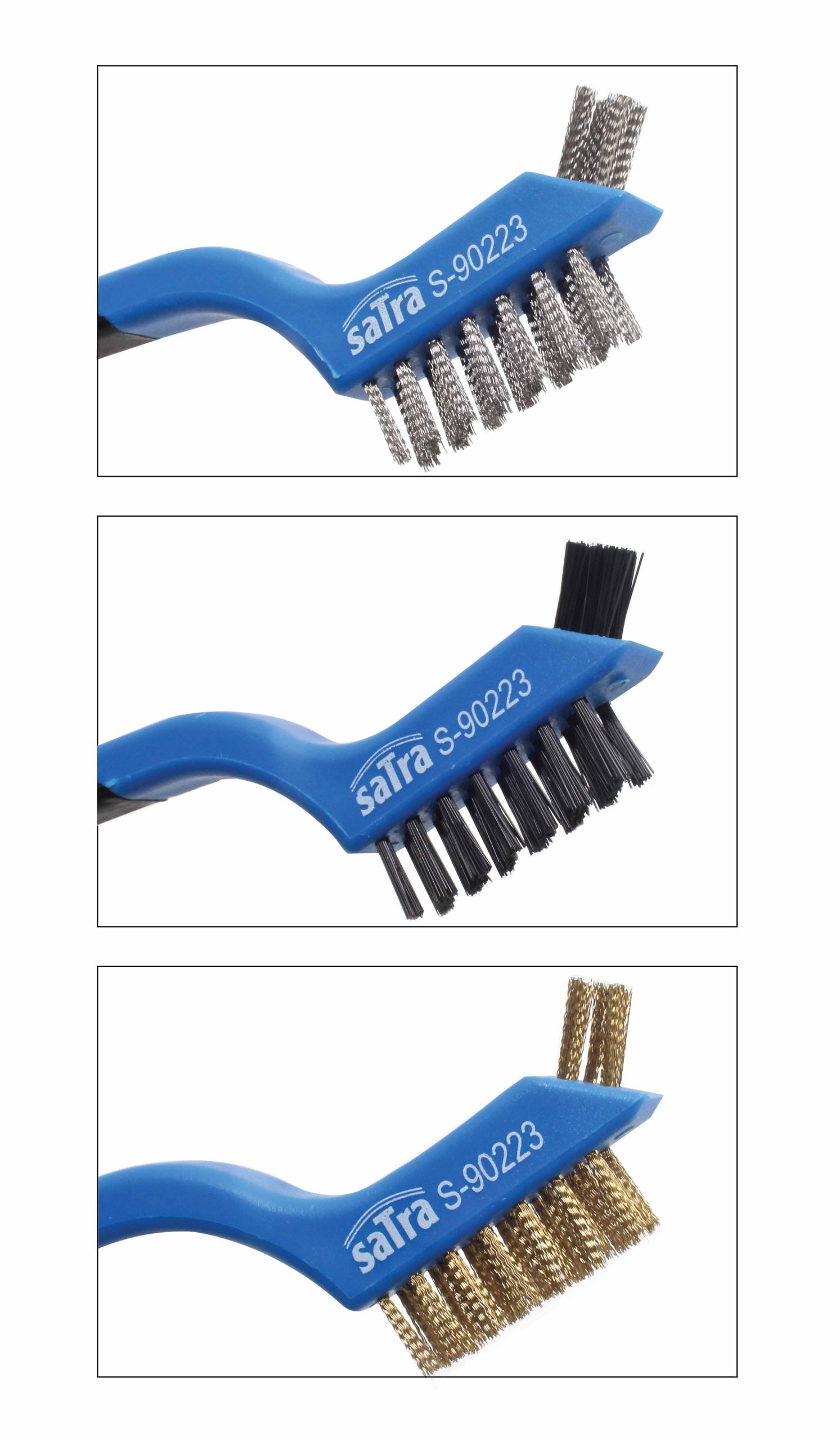 Das Set enthält drei Bürsten mit Stahl, Messing und Nylonborsten – ideal zum Entfernen von Rost, Farbe, Korrosion, Schmutz und Staub von Metall, Holz, Kunststoff und anderen Oberflächen. Rutschfeste, langlebige Griffe bieten bessere Kontrolle und verringern die Ermüdung der Hände bei intensiver Arbeit.