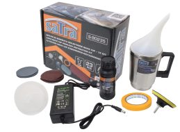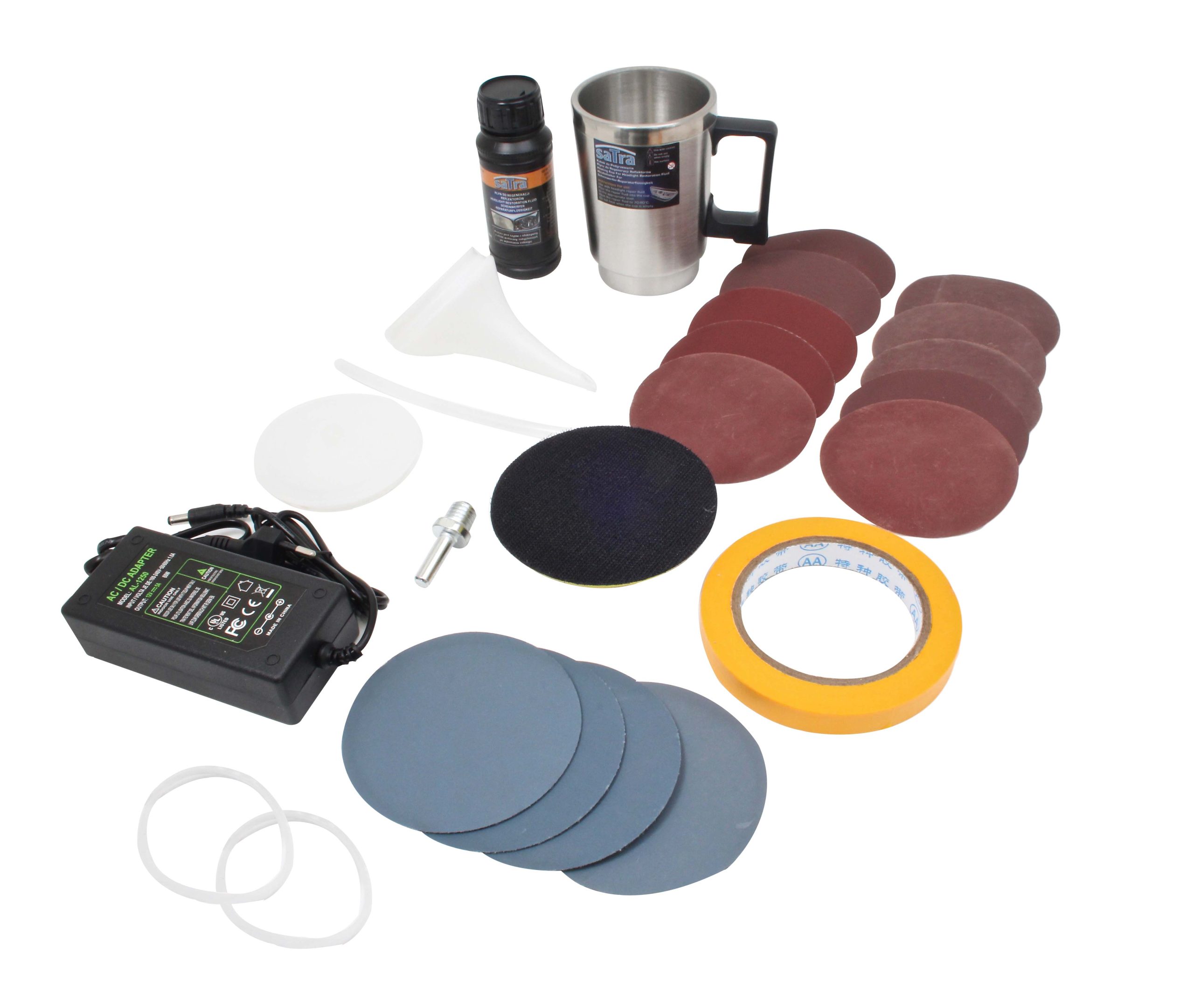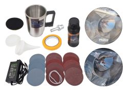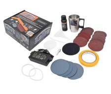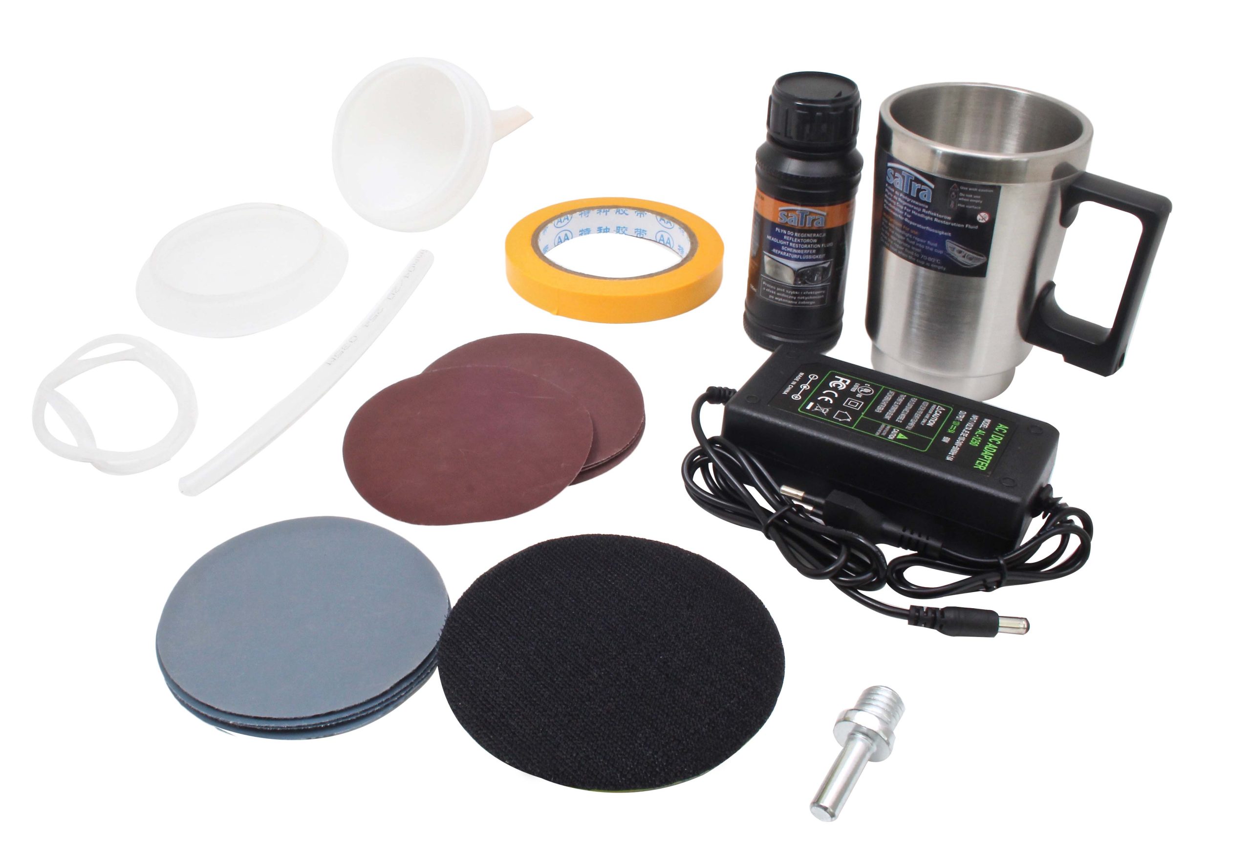Professional kit designed for effective restoration of automotive headlights made of plastic.