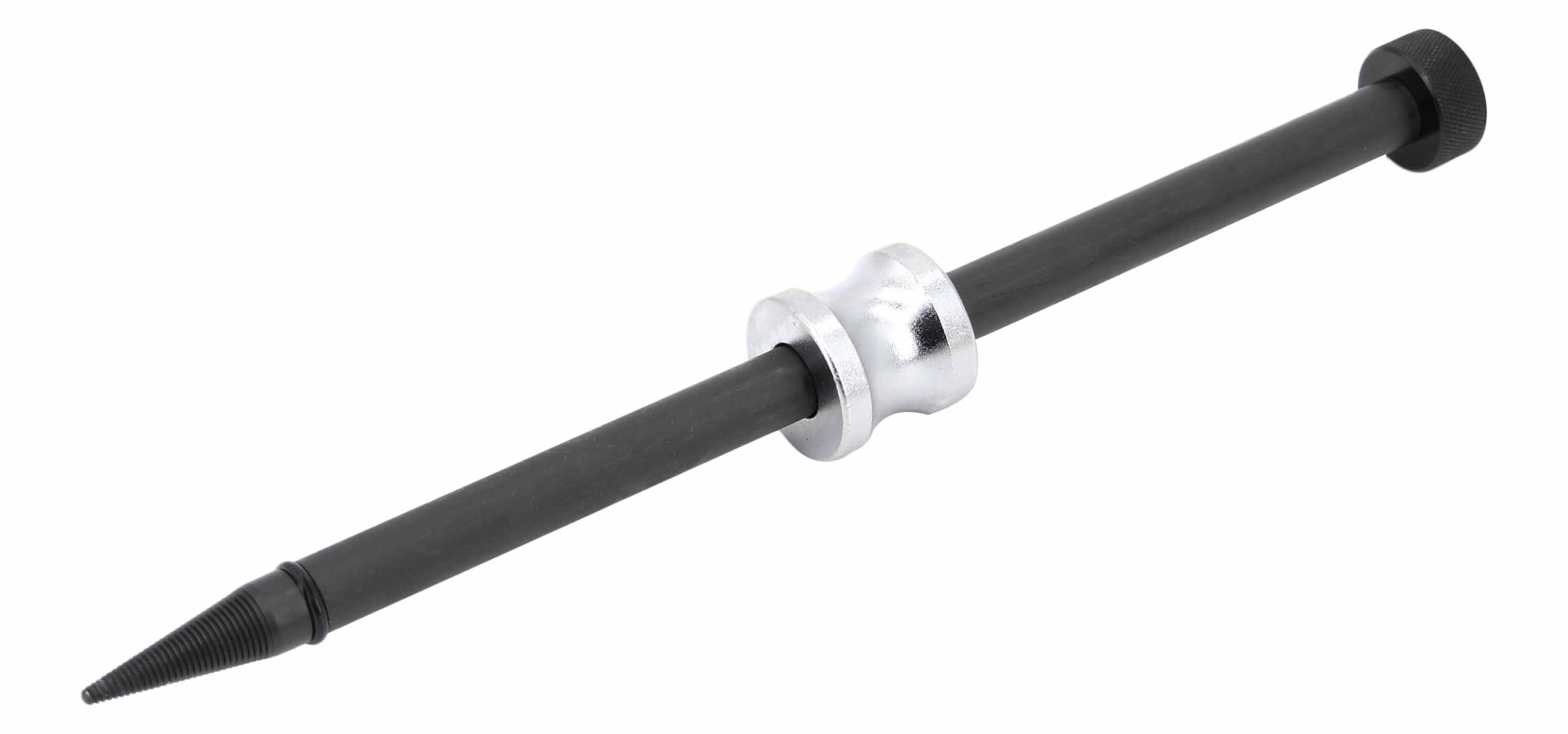 The tapered threaded end of the tool is screwed into the copper seal to clamp, then tapped firmly with the built-in slide hammer.