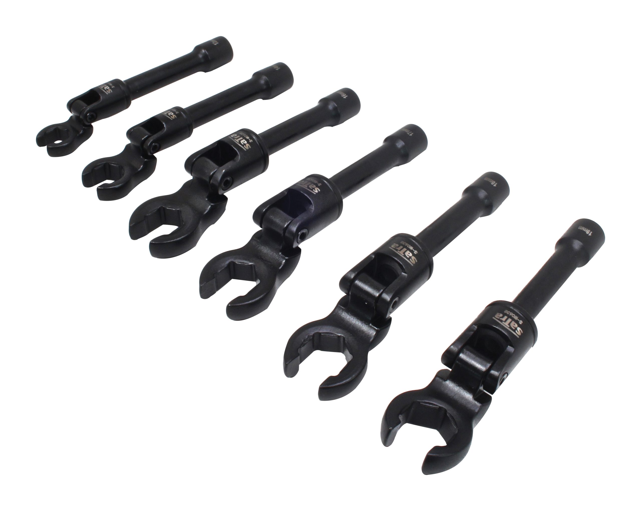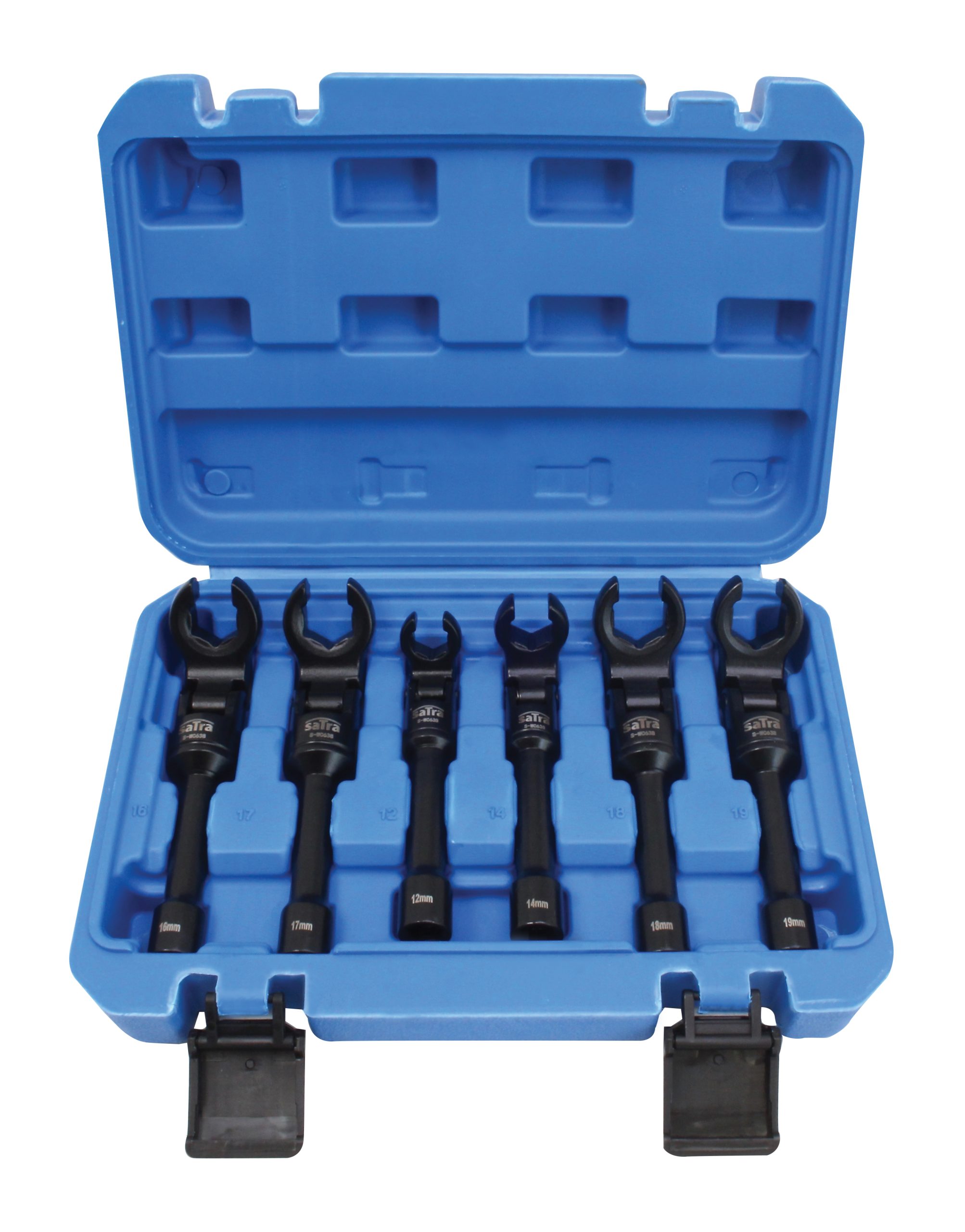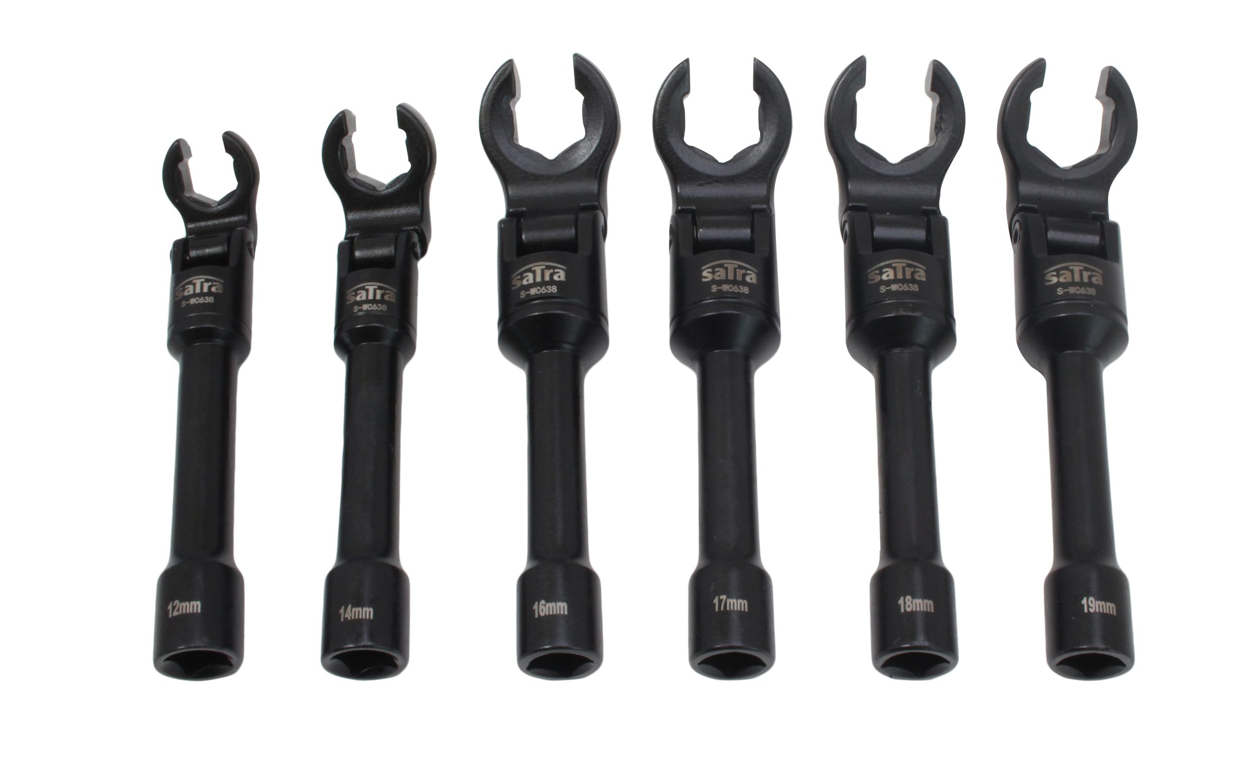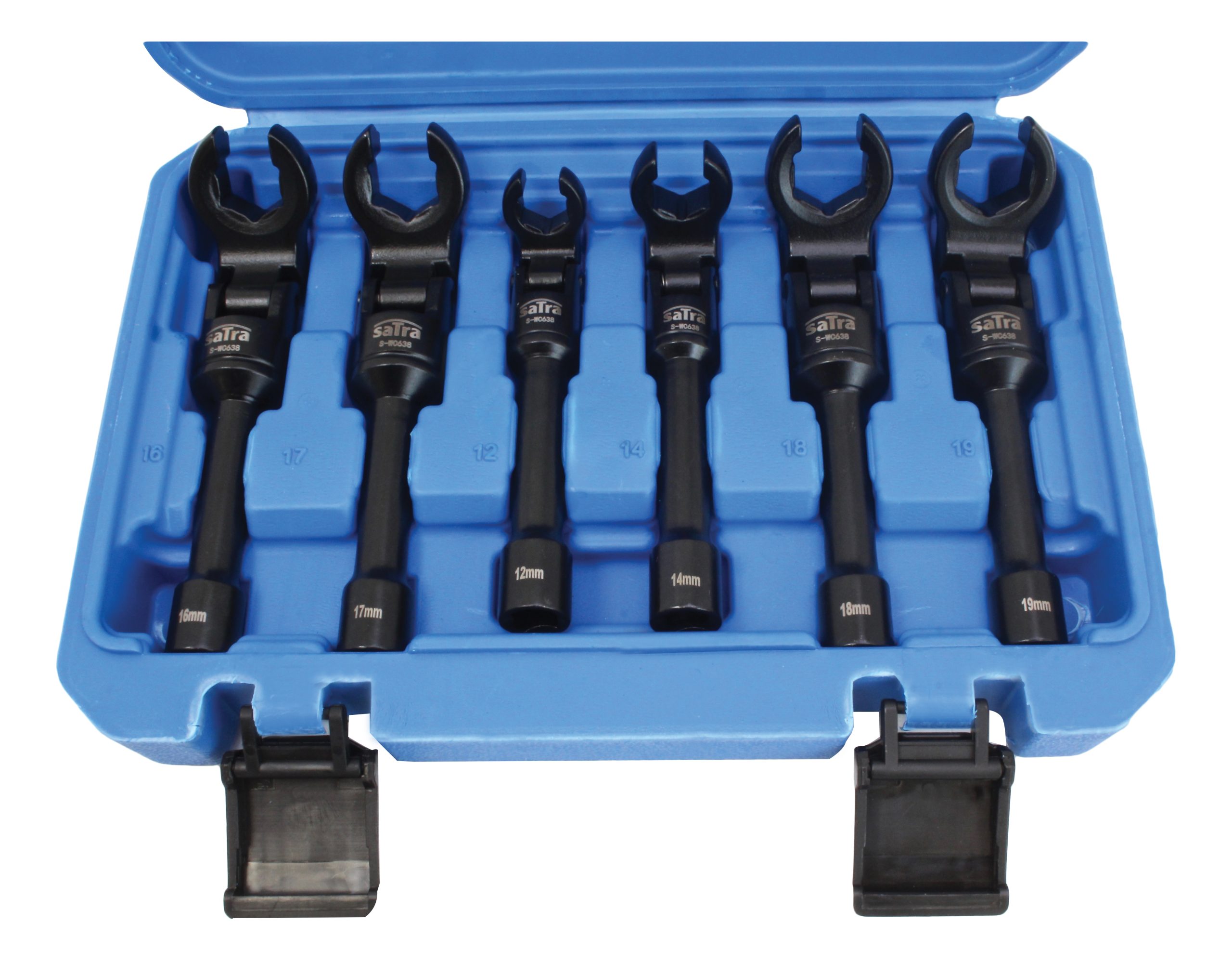 SATRA brand set consisting of 6 open-end flex head wrenches made of high-quality chrome-vanadium steel, designed for general-purpose use.