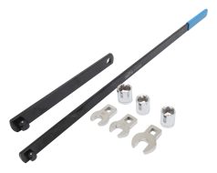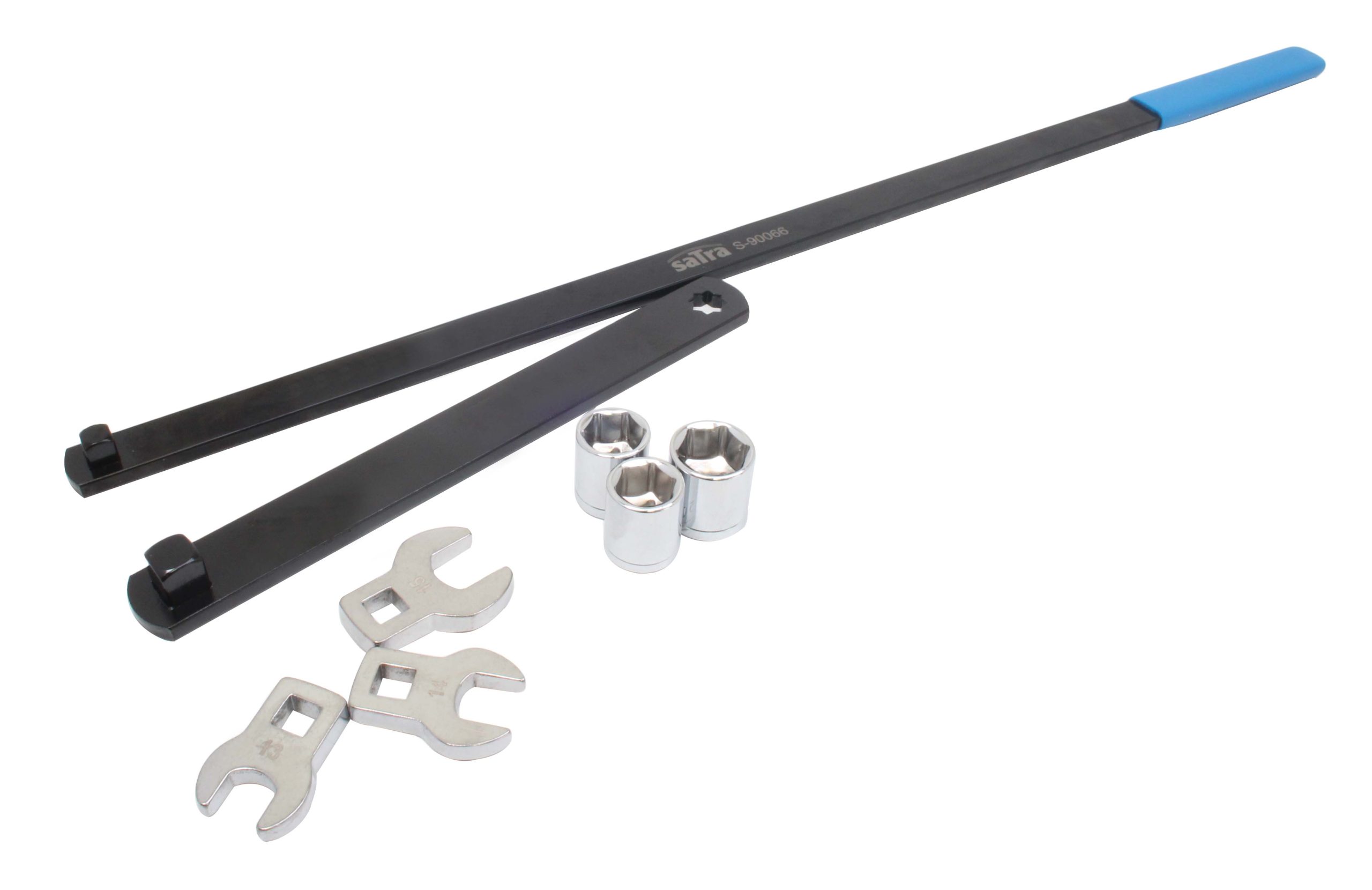 Set comes with ½”, 3/8” -15, 16, 18mm HEX and 13,14 and 15mm crowfoot wrench to cover up a very wide range of idler pulleys.