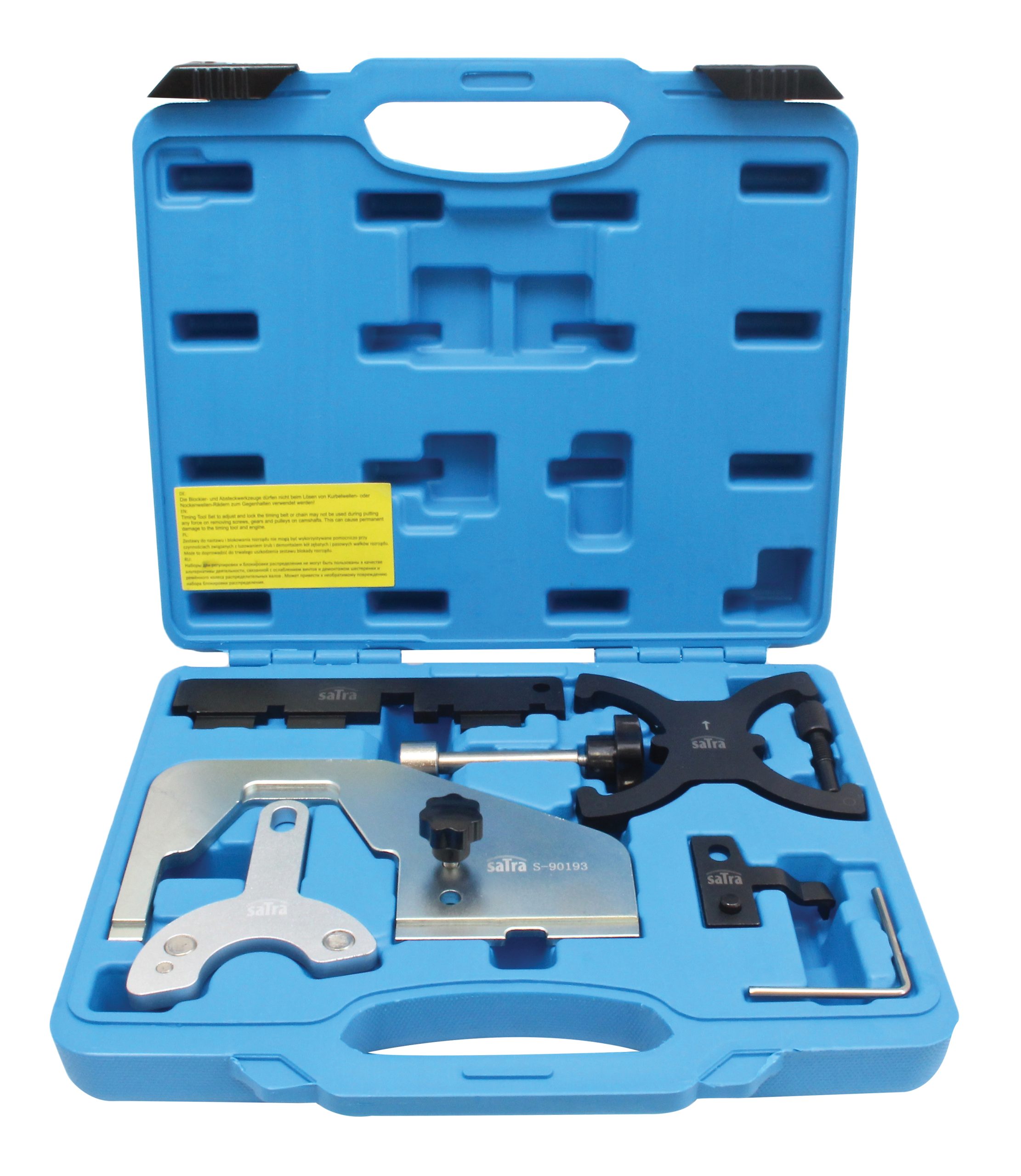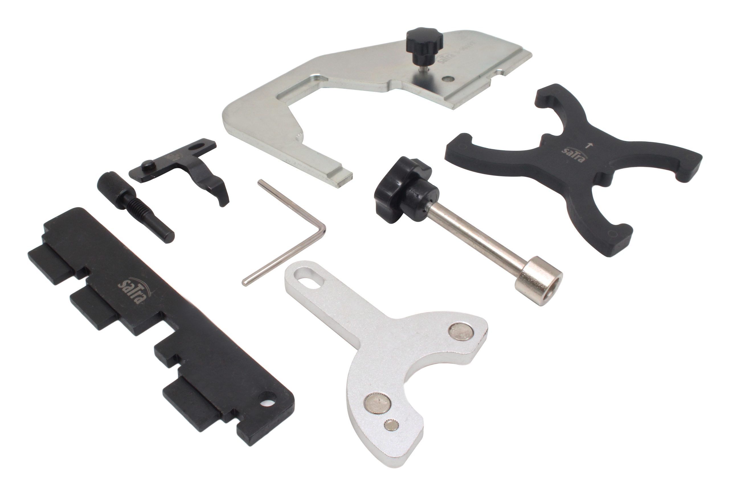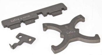 Adjustment tool for many Ford, Volvo and some Mazda engines, includes tools for time-saving alignment of the camshaft and crankshaft.