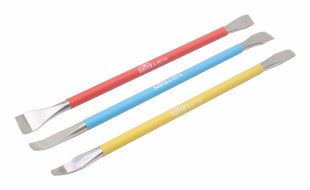 3pcs Light Duty Pry Bar Set Crowbar tip mirror polished. Different blade shapes for multiple working function. Heat shrink plastic uptake is used on the rod part of the pry bar. Material: Stainless Steel (SS201) Rod diameter: 6mm Total Length 185mm Blade Specifications 3.5-5mm(Black), 6-10mm(Blue), 9-12mm(Red)
