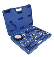 GASOLINE PRESSURE TESTER Fuel pressure tester with 0-10 bar (140PSI) manometer. Tightness and control pressure testing of almost all Bosch injection systems C.I.S Jetronic. Adapter: M10x1mm &M12x1.5, M12x1.5mm & M14x1.5, M8x1mm M12x1.5, M8x1mm M12x1.5, 7/16-20 UNF, M10X1, Adapter: 7/16-20 UNF, 7/16-20 UNF;M12x1.5, 7/16-20 UNF;M12x1.25, 7/16-20 UNF;M12x1.5, M8X1&7/16-20 UNF, M12x1.5mm;M14x1.5mm